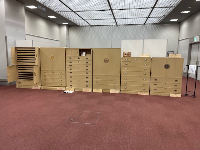 昨年末から色々とお問い合わせがあり、図面のやり取りも何度か行い、展示会にお出かけ頂き、ご注文を頂きました。和たんすには、衣装盆が15枚と帯締め盆。